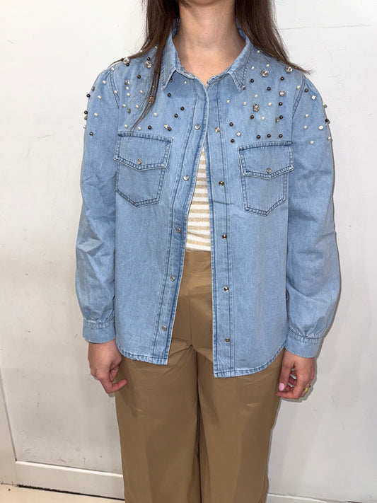 Camicia in denim con pietre e perle MORE